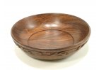 Dřevěná miska soustružená z teakového dřeva Průměr 17,5 cm Po okraji vyřezávaná