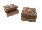 Tři kulaté mosazné krabičky - Kytičky vykládané kostí - ruční práce Tři kusy zapadající do sebe Průměr největší 5 cm Použití na léky, prstýnky atd.