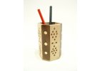 10 cm vysoký Tužkovník, kombinace světlého a tmavého dřeva. Vše vybíjené mosazí.