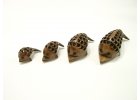 5 cm Výroba takového kousku, je složitá. Do plného obrysu želvy se dlátkem udělají jednotlivé otvory, a jimi se pak uvnitř dlátkem vyřeže "miminko" želvičky
